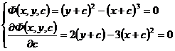 Eliminate c from , and get the c- discriminant curve y=x sum . Substitute it into the original equation directly, we know that y=x is not the solution of the known equation, so it is not a singular solution, but odd solution .