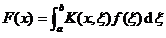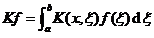 For a given kernel K ( x , ξ ), each function f ( x ) has another function F ( x ) corresponding to it. This correspondence is called an integral operator, denoted as K , namely