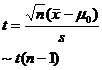 Population variance unknown, test whether the population mean is equal to (or less than or greater than) a known constant
