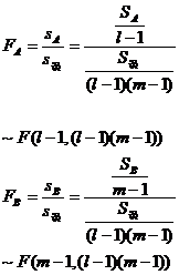 where F A , F B and represent the effect of factor A , the effect of B and the interaction of factors A and B , respectively, and