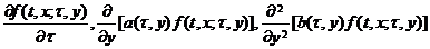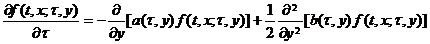[ Kolmogorov's Second Equation ] If the conditional distribution function F ( t , x ; τ , y ) of the diffusion process has a distribution density f ( t , x ; τ , y ) , and the following partial derivatives