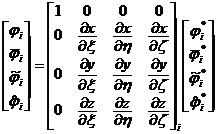 In the formula, the right subscript i of the fourth-order matrix represents the value at node i . On the contrary