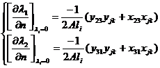 注意,由于这些节点参数值的定义与坐标系无关,因此上述的型函数在局部的面积坐标和整体的直角坐标系中是一致的,   (i=1,2,3).