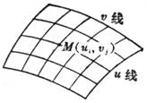 For surfaces represented by parametric or vector expressions, if a series of numerical values L is taken and u is continuously changed, then r ( u , )( i =1,2, L ) represents a family of curves, called u -lines (Figure 7.23 ). ); similarly, if u is a series of values u 1 , u 2 , L , and let it vary continuously, then r ( u i , )( i =1,2, L ) represents another family of continuous curves, called lines . The u line and the line form a curve network on the surface, which is called coordinate line or coordinate network . So u = u i ,![]()