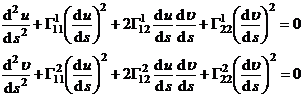 The differential equations for geodesics on surfaces are where p , q , r , s , t are shown in the previous table .![]()