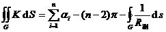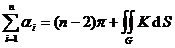 Let the geodesic curvature representing any point on the curve C be the surface area element, and be the interior angles of the corners of C ( figure ), then the double integral on G![]()