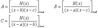 式中N(x)的最高次数r≤2,a¹ b¹ c;A, B, C为待定常数,可由下式确定:
