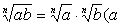 [乘积的方根] 乘积的方根等于各因子同次方根的乘积;反过来,同次方根的乘积等于乘积的同次方根,即