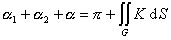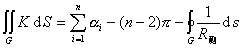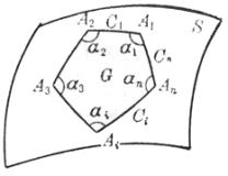 表示曲线C上任一点的测地曲率,为曲面面积元素,分别为C的角点的内角(图),则在G上的二重积分