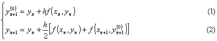 这个方法中,(1)式用折线法提供初值,称为预报公式.(2)式用梯形法给出较精确的值,称为校正公式.合称预报校正公式.