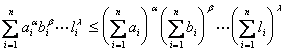 1o 设ai, bi, L, li(i=1, 2, L, n)为正数,又a, b, L, l为正数,且a+b+L+l=1,则