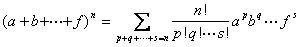 和式中每一数组(p, q, L, s)对应一项,这个数组满足0£p£n, 0£q£n, L, 0£s£n, p+q+L+s=n,