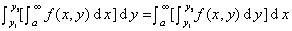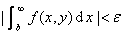 [一致收敛性] 设函数f(x,y)是定义在区域R(a≤x<∞, y1<y<y2)上的连续函数,若对任意给定的ε>0,都存在只与ε有关的正数B=B(ε),使得当b≥B时,对区间(y1,y2)内一切y不等式