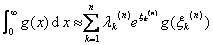 0.49647 75975 1.17764 30609 1.91824 97817 2.77184 86362 3.84124 91225 5.38067 82079 8.40543 24868 |