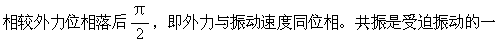 种特殊情况。从力的角度看,要求周期性变化的策动力的方向跟振动物体的运动方向相同,凡是跟振动物体运动方向相反的力都会促使振动物体的振幅减小。策动力频率变化跟系统的固有频率越接近,使物体振幅增加的力作用次数就越多。当策动力的频率与系统的固有频率相等时,并且策动力的位相跟物体运动的位相同相时,策动力的每一次作用都将使物体的振幅增加而达到最大值。若从功能关系来说,就要求在任何时刻,周期性变化的策动力对振动系统做正功。在一个振动周期中,由于策动力的频率和系统的固有频率不同,因此策动力的方向和物体运动的方向有时一致,有时相反。当方向一致时,供给系统振动能量,对物体做正功;当方向相反时,使系统振动能量减少,而对物体做负功。只有在策动力频率跟振动系统的固有频率相同,且位相相同时,才有可能使其方向在整个周期中跟物体运动方向一致,从而达到在任何时刻做正功的效果。系统能量不断增加,振幅不断增大,直到策动力做功供给系统的能量等于克服摩擦阻力消耗的能量,振幅不再增大,即达到了最大的振幅。因为在物体作无阻尼自由振动时,外力的频率等于振动体的固有频率就会发生共振,由于实际的振动多少存在一些阻尼作用,策动力在频率要稍稍偏移振动体的固有频率才能发生共振,在这种情况下,只能说“接近固有频率”,而不说“等于固有频率”。