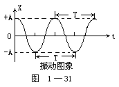 【波的图象】在平面直角坐标系中,用横坐标表示在波的传播方向上各个质点的平衡位置与参考原点的距离,用纵坐标表示某一时刻各个质点偏离平衡位置的位移,连接各位移矢量的末端所得到的曲线,就叫“波的图象”也称为波形。利用波的图象,可以形象地反映出通过机械波的媒质区域中,某一时刻每个质点偏离平衡位置的位移对空间的分布规律。由简谐振动在媒质中传播所形成的波——简谐波,在任何时刻的图象都是余弦(或正弦)曲线,而媒质质点的振动图象也是余弦(或正弦)曲线。这两条曲线变化规律相同,但它们的物理意义不同。振动图象的横坐标表示时间,纵坐标表示某一质点在各个时刻的位移;波的图象的横坐标是质点的位置,而纵坐标表示的是某一时刻各个质点的位移。在振动图象中,相邻两个最大值之间的间隔等于周期T。在波的图象中,相邻两个最大值之间的距离等于波长λ。振动曲线是跟踪一个质点标记出它的位移随时间变化的情况,就好像是给该质点拍的“电影”。而波形曲线则是记录了某时刻波线上各点相对平衡位置的位移情况,就好像给波线上全体质点照的一张“像片”。见图1-31和图1-32所示。