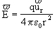 来表示,电场中某一点的电场方向可用试探点电荷(正电荷)在该点所受电场力的方向来确定;电场强弱可由试探电荷所受的力F与试探点电荷带电量q的比值(F/q)来确定,也就是说某点电场的强弱等于单位电荷在该点所受力的大小。试探点电荷应该满足两个条件;(1)它的线度必须小到可以被看作点电荷,以便确定场中每点的性质;(2)它的电量要足够小,使得由于它的置入不引起原有电场的重新分布。电场强度的实用单位为伏特/米或牛顿/库仑。常用的单位还有伏特/厘米。由库仑定律和电场强度的定义可知,点电荷q在电场中某一点所受的电场力