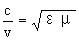 式中c为真空中的光速。v为在介电常数为ε和导磁系数为μ的媒