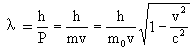 上述公式称为德布罗意公式,如果v<<c,则
