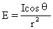 照度反比于光源到受照射面的距离r的平方,而正比于光束的轴线方向r与受照面的法线n间夹角的余弦,即
