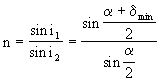 利用这两个特殊的入射角和折射角,可以计算棱镜材料的折射率