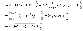 式中e为薄膜厚度,r为折射角。根据折射定律n1sini=n2sinr,因此