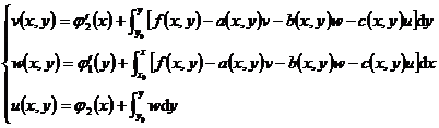 It can be solved by the successive approximation method, obviously x=x 0 , y=y 0 is the characteristic line of the Laplace hyperbolic equation, so this method is also called the characteristic line method .