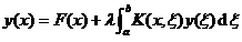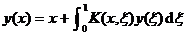 Solving for 1° In this special case, the integral equation can be reduced to a differential equation with endpoint conditions y (0)=0, y (1)=1