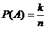 [ Classical definition of probability ] Suppose a random experiment (an experiment whose outcome cannot be accurately predicted in advance and can be repeated under the same conditions) has only a finite number of different basic events ω 1 , ω 2 , . . . , ω n (A basic event is also a kind of event, a general event is always composed of several basic events), each basic event is equally possible * , the whole of the basic events is recorded as Ω , and it is called the basic event space, if Event A consists of k ( k n