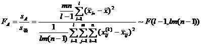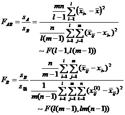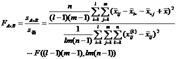 where F A , F B and represent the effect of factor A , the effect of B and the interaction of factors A and B , respectively, and
