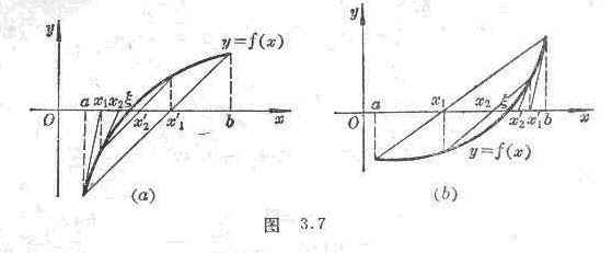 Let f ( x ) be continuous on [ a , b ] and also be continuous, and 1 0, 1 0 , f ( a ) f ( b )<0 (let f ( a )<0, f ( b )>0 ) , through the point ( a , f ( a )) (or the point ( b , f ( b ) ) ) as a tangent to the curve: