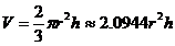 r is the radius of the base circle , h, H are the minimum and maximum heights , respectively, |