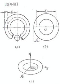 volume surface area side area center of gravity ( Q is the center of the bottom circle ) volume surface area The center of gravity G is on the center of the ring Moment of inertia Take the center of the ring as the coordinate origin , and the z - axis is perpendicular to the plane where the ring is located |