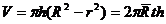 volume surface area side area center of gravity ( P and Q are the center of the upper and lower bottom circles , respectively ) Moment of inertia Take the center of gravity G as the origin of the coordinates , and the z - axis is perpendicular to the bottom surface volume surface area side area where t is the wall thickness of the pipe , and center of gravity Moment of inertia Take the z -axis coincident with GQ volume surface area