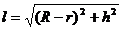r, R are the upper and lower base circle radius , h is the height , l is the busbar