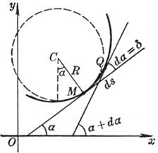 It is called the curvature radius of the curve at point M. If it is intercepted on the normal line of the concave direction of the curve , C is the curvature center of the curve at point M , and the circle with C as the center and R as the radius is called the curvature of the curve at point M. A circle , also known as a close circle . The coordinates of point C are