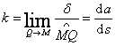 [ Definition of curvature, radius of curvature, circle of curvature ( or approximation circle ) and center of curvature The ratio between the angle d and the arc length between the positive tangents of two points M and Q on the curve , when Q tends to M , the limit , namely