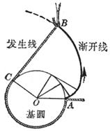 For example , put a thin line that does not stretch around the circumference of the disc , tie a pencil to the end of the line, and pull the end A of the line to gradually open. The curve drawn by the pencil tip on the paper is the involute of the circle . This circle The base circle is called the involute . The thin line is called the occurrence line of the involute ( Figure 7.16( a )).
