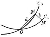 Let the two curves C1 and C2 have a common point O , take a point M on C2 , let the distance from M to C1 be h , and let d denote the distance from M to O (Figure 7.17 ), if