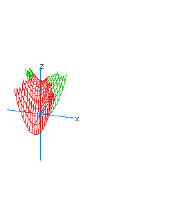 | 26 | x2-y2+z2-t=0 | hyperboloidal paraboloid oriented towards the axis of t, horizontal |