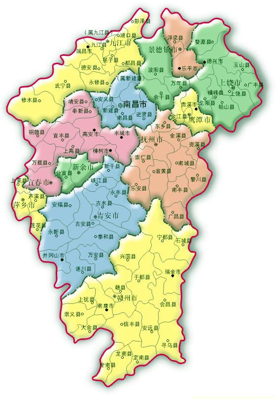 This province area more than 160,000 square kilometers, the entire province governs 11 places levels city, 19 municipal districts, 10 county level cities, 70 counties. The altogether 789 towns, 719 townships (7 ethnic townships), 107 subdistrict offices, the provincial capital is Nanchang.