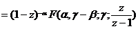 is an analytical expansion of a Gaussian hypergeometric series into the removed plane, also known as a hypergeometric function .![]()