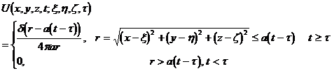 2 ° For a sphere (the center of the sphere is O and the radius is a ), the basic solution for u = 0 is , r is the distance between P ( x , y, z ) and the parameter point M ( , , ) , and M is about the sphere. Invert the point M 1 , record r 1 as the distance between M 1 and P , then the Green's function is ![]()