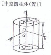 volume surface area side area center of gravity ( P and Q are the center of the upper and lower bottom circles , respectively ) Moment of inertia Take the center of gravity G as the origin of the coordinates , and the z - axis is perpendicular to the bottom surface volume surface area side area where t is the wall thickness of the pipe , and center of gravity Moment of inertia Take the z -axis coincident with GQ volume surface area