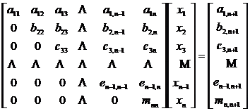 Find the main element in , may wish to set it as the main element, multiply the nth equation by and add the nth equation to obtain a new nth order linear equation system, which is expressed as a matrix as follows![]()