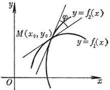 [ Included angle of the curve ] The slopes of the two curves intersecting at the point and the tangent at the intersection point are respectively and , and the included angle j is called the included angle of the two curves ( Figure 7.14), and![]()