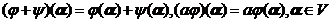 The sum and multiplication of two functions of the set of linear functions in V are defined in the usual way as follows:![]()